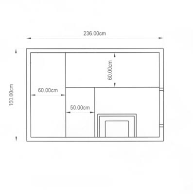 Saunagröße 236 cm x 160 cm x 200 cm,
