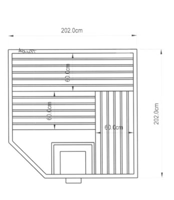 Saunagröße 202 cm x 202 cm x 200 cm,