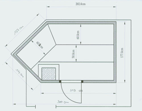 Saunagröße 300 cm x 177 cm x 200 cm,