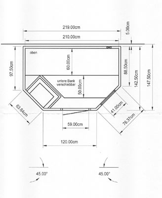 Saunagröße: 143 cm x 219 cm x 210 cm,