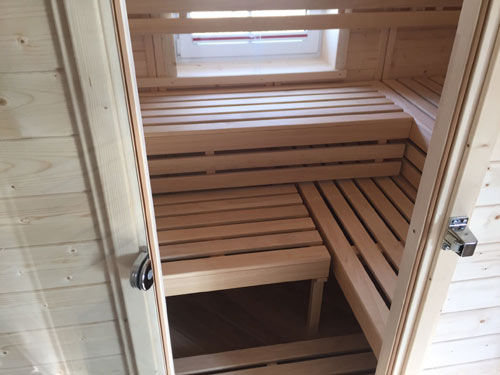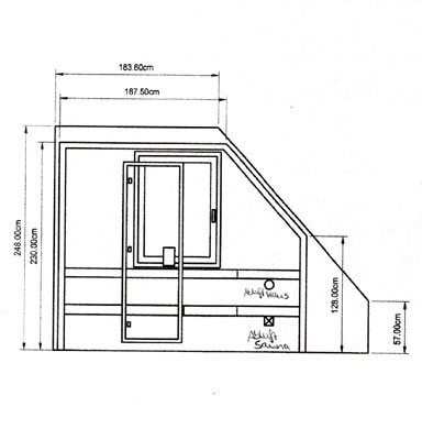 Saunagröße: 185 cm x 279 cm x 230 cm (Überhöhe)