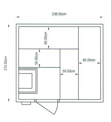 Saunagröße: 236 cm x 211 cm x 200 cm,