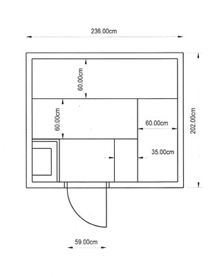 Saunagröße 236 cm x 202 cm x 200 cm,