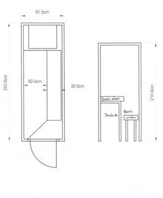 Saunagröße 91,5 cm x 253 cm x 210 cm,