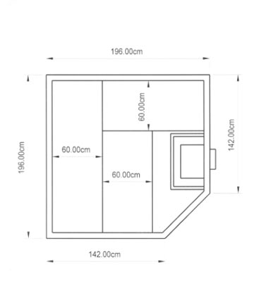 Saunagröße: 196 cm x 196 cm x 195 cm,