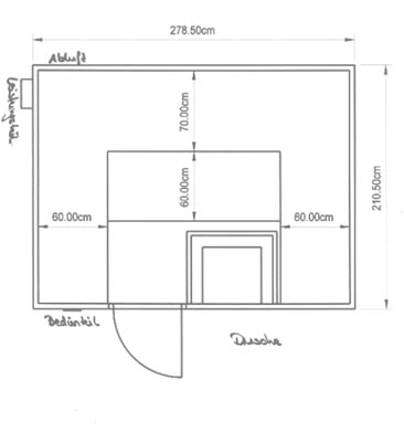 Saunagröße: 279 cm x 211 cm x 200 cm