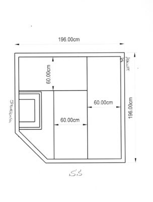 Saunagröße 196 cm x 196 cm x 195 cm,